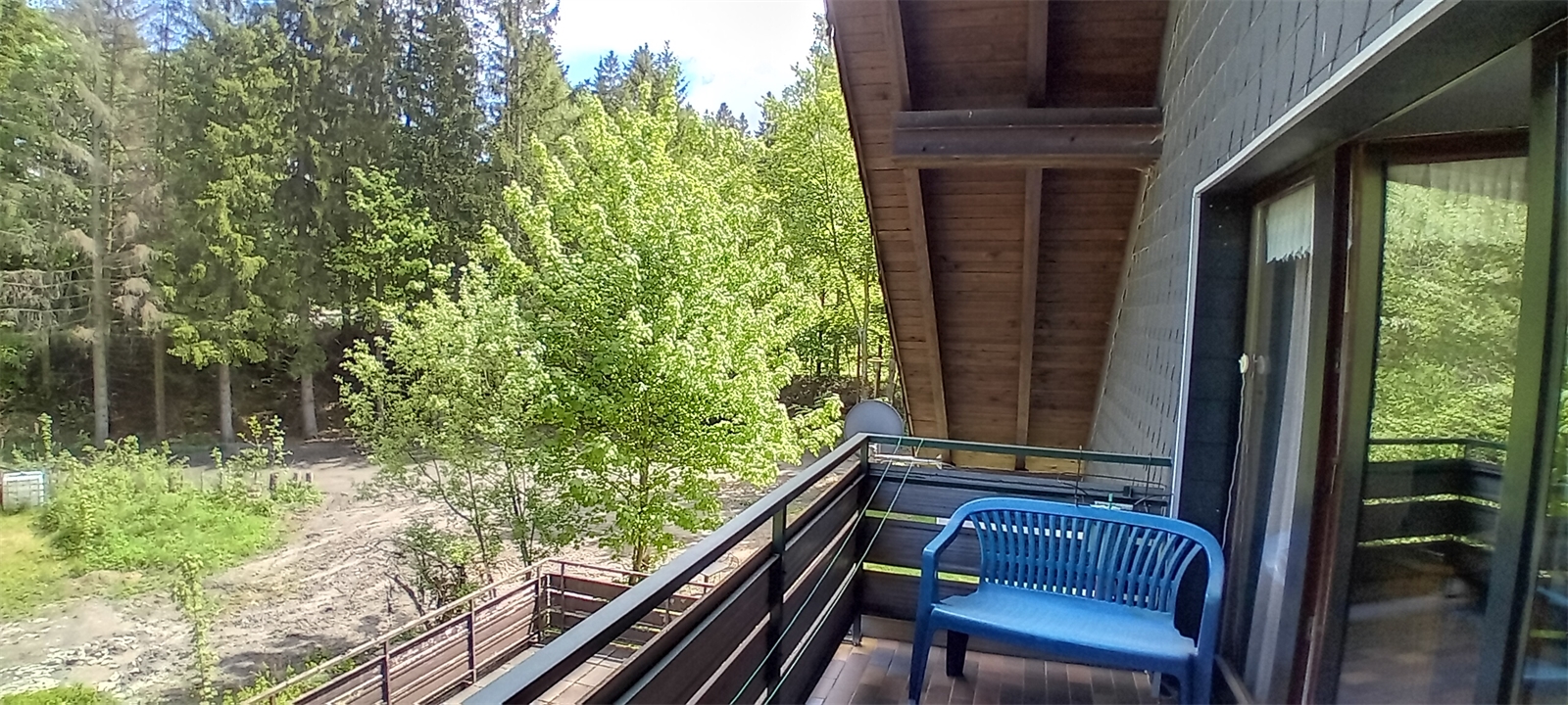 Der Balkon befindet sich unter einem großen Dachüberstand, der auch bei Regen ein Verweilen an frischer Luft ermöglicht. Durch die rund 1 m große Überdachung können Sie sich bei jedem Wetter mit einem Glas Wein oder einer Tasse Tee an die frische Luft setzen und dem Klang der Vögel und der Natur lauschen.